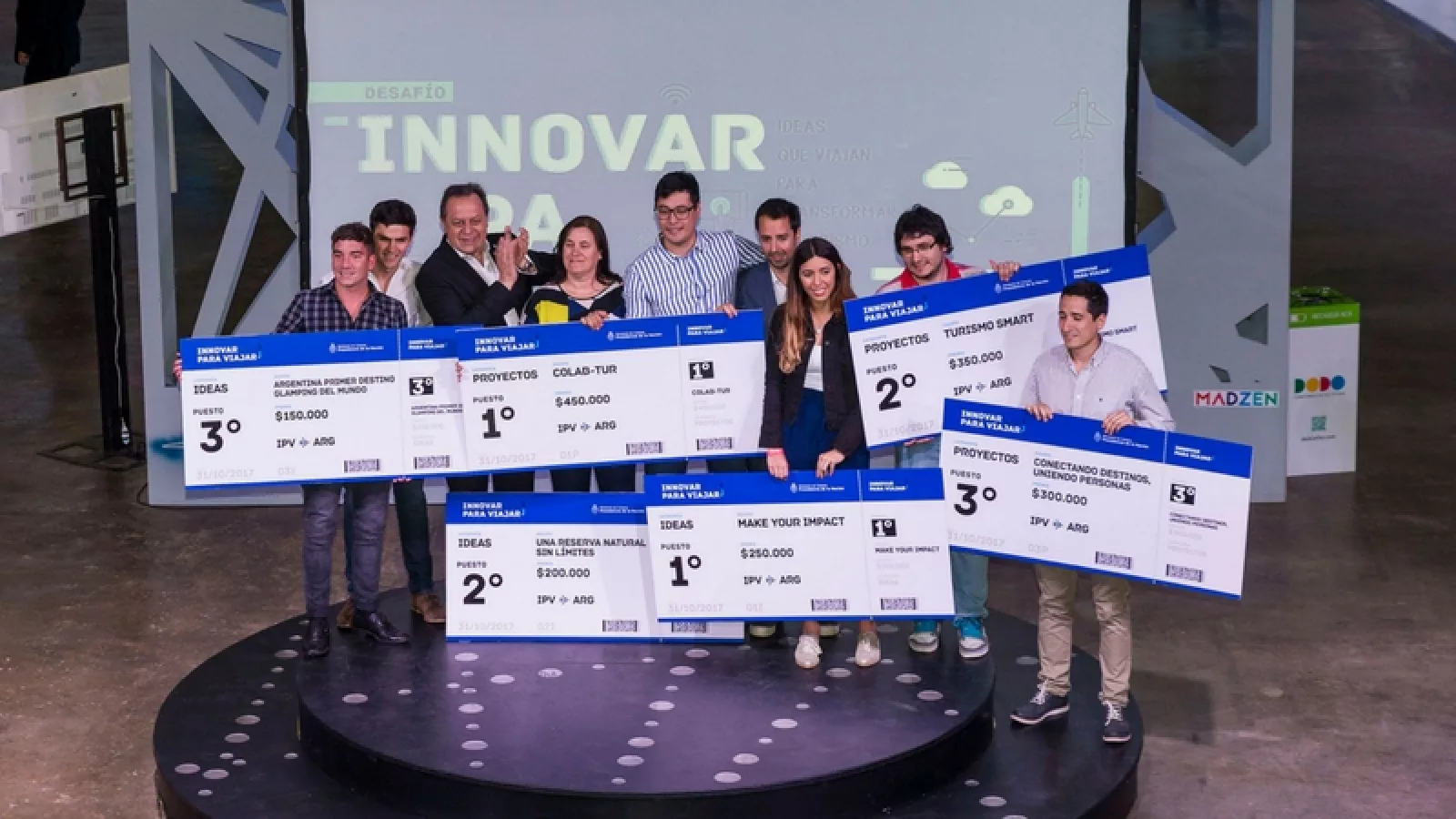 Los premiados fueron elegidos entre 44 finalistas (2 personas por proyecto o idea). Por proyecto, el primer premio fue para “Co-labtur” -$450.000-, el segundo premio lo ganó “Turismo Smart” -$350.000- y el tercer premio, “Conectando destinos, uniendo personas” -$300.000-. Por idea, el primer puesto fue para “Make your impact travel” -$250.000-, el segundo para “Una reserva natural sin límites” -$200.000- y el tercer puesto lo ganó “Argentina primer destino glamping del mundo” -$150.000-.