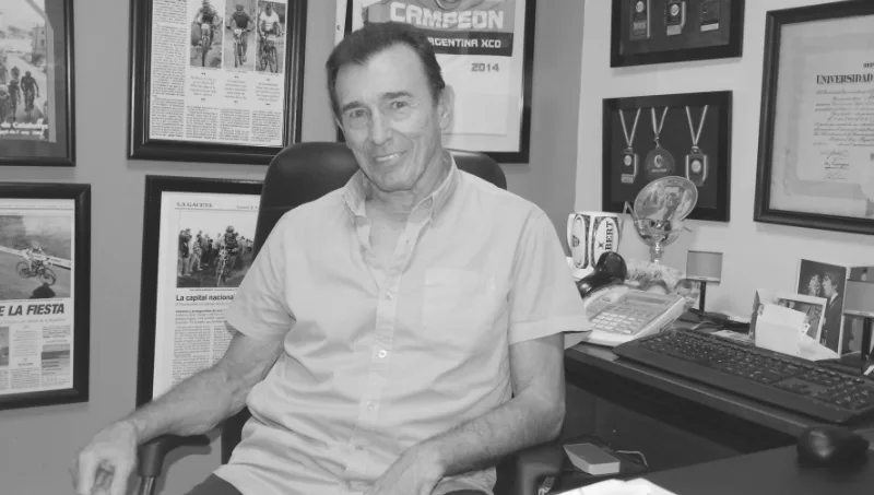 Una catarata de cuadros en la pared con notas de diario relacionadas a noticias de campeonatos ganados de ciclismo, el canto y referidas al deporte y la disciplina en general, inundan la oficina donde nos recibe Hugo Marcantonio, justo en la parte de atrás de una de las cinco sucursales de tienda deportivas que lleva adelante junto a sus hijas y sus yernos.