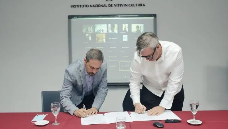Martín Hinojosa, presidente del Instituto Nacional de Vitivinicultura, firmó un acta compromiso con la empresa OpenVino para facilitar el acceso a bodegas del país a los servicios que brinda la plataforma en su módulo de tokenización.