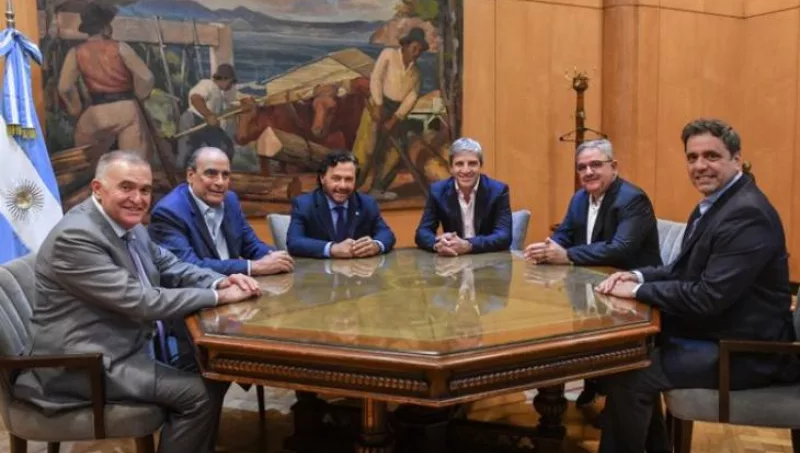 La reunión se concretó en Buenos Aires, en el Palacio de Hacienda. También participaron el jefe de Gabinete, Guillermo Francos; el vicejefe de Gabinete, Lisandro Catalán; los gobernadores de Salta, Gustavo Sáenz; y de Catamarca, Raúl Jalil.