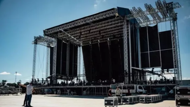 El armado del escenario evidencia una inversión significativa en infraestructura y tecnología. Más de 300 trabajadores participan del montaje de una estructura de gran escala, de 25 metros de ancho, 18 de profundidad y 12 de altura.