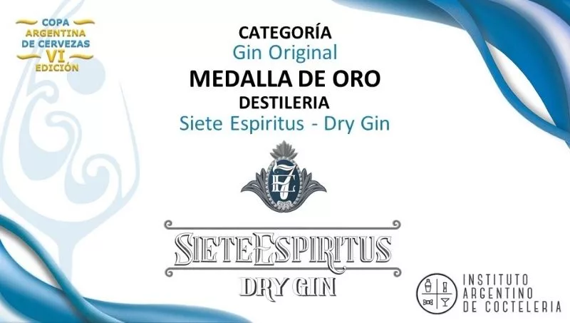 En el marco de la Copa Argentina de Cervezas 2021, las cervecerías artesanales también se dedican a producir gin, y en esta competencia hubo una especial dedicada para este rubro, la cual se dividió en dos categorías “Gin Original” y “Gin de Autor”. En la primera se impuso Siete Espíritus con su Dry Gin, obteniendo la medalla de oro como “Mejor Gin Original”.