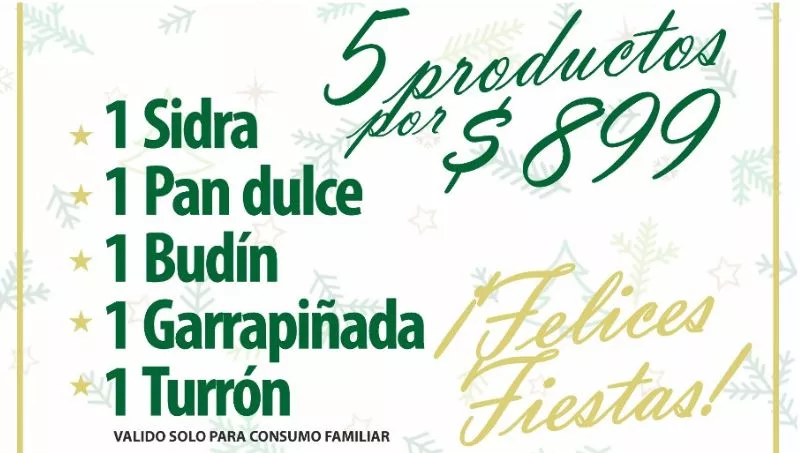 -Canasta Navideña: a un precio de $ 899 (incluye cinco productos: sidra, pan dulce, budín, garrapiñada y turrón).