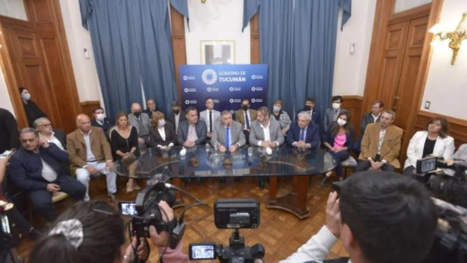De la conferencia participaron el vicepresidente de la Legislatura, Regino Amado, los ministros Juan Pablo Litchmajer (Educación), Lorena Málaga (Desarrollo Social), Carolina Vargas Aignasse (Gobierno y Justicia), Luis Medina Ruiz (Salud), Miguel Acevedo (Interior), Eugenio Agüero Gamboa (Seguridad) y Álvaro Simón Padrós (Desarrollo Productivo); la secretaria general de la Gobernación, Silvia Pérez; el fiscal de Estado, Federico Nazur y el concejal, Ernesto Nagle.