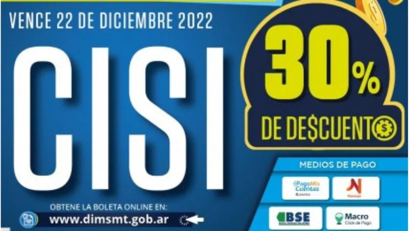La Municipalidad de San Miguel de Tucumán recuerda a los contribuyentes de la Capital que hasta el jueves 22 de diciembre podrán obtener un descuento del 30% por el pago anual del tributo Contribuciones que Inciden Sobre los Inmuebles (CISI), correspondiente a 2023.