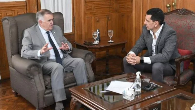 El gobernador Osvaldo Jaldo mantuvo una reunión en su despacho de Casa de Gobierno con el Jefe Regional Enohsa Norte Grande, Gerónimo Vargas Aignasse, para diagramar la apertura de sobres de este viernes en el Salón Blanco, por licitaciones para obras de agua potable y saneamiento en el interior de la provincia.