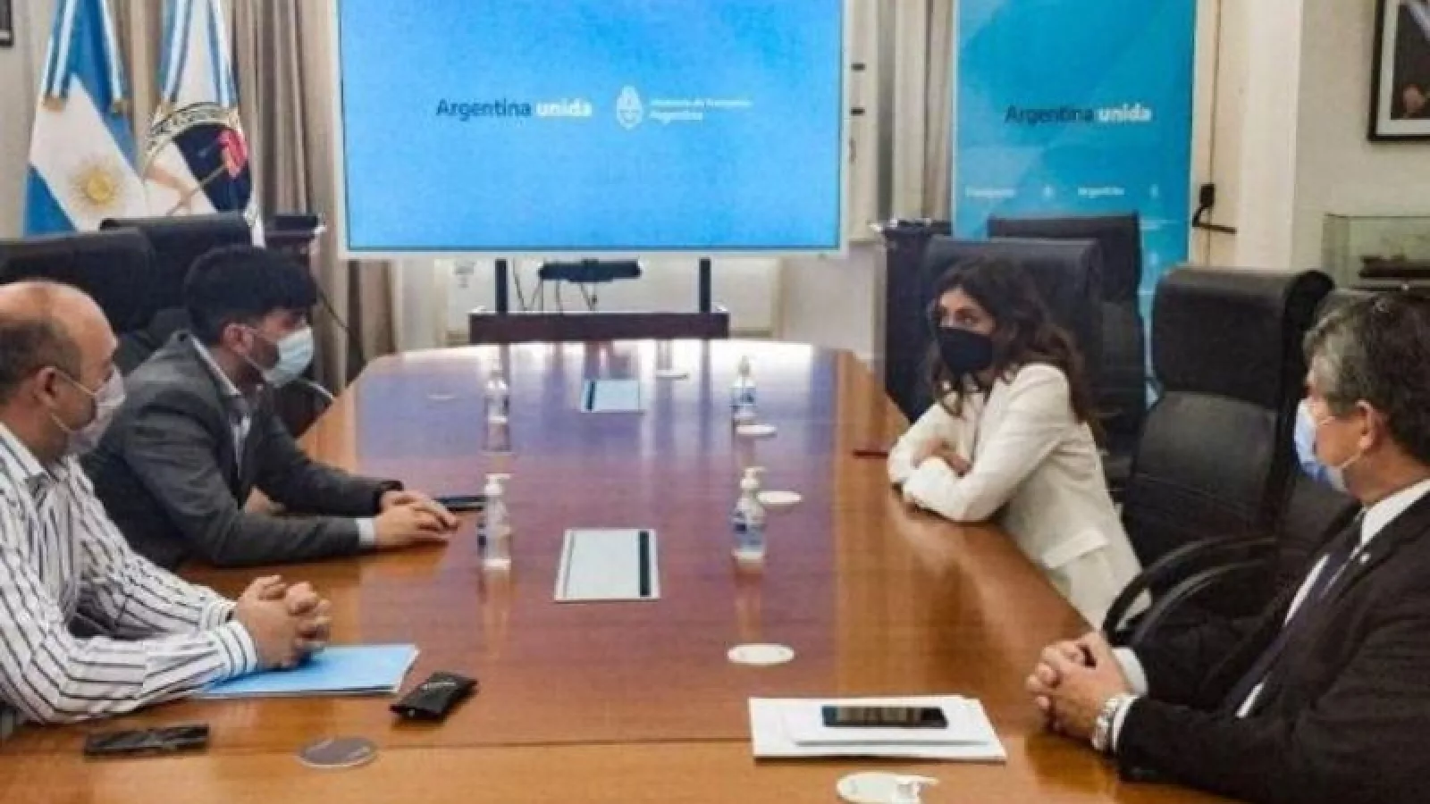 En el marco de la reunión que se llevó a cabo en Casa Rosada, la ministra de Gobierno y Justicia, Carolina Vargas Aignasse mantuvo una reunión con Marcos Farina, secretario de Articulación Interjurisdiccional; Francisco Echarren, director Nacional de Desarrollo de Obras y Álvaro Errea, Subsecretario de Planificación y Coordinación de Transporte del Ministerio de Transporte de la Nación.