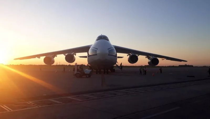 Uno de los aviones de carga más grande del mundo Antonov (AN-124) arribó el pasado viernes a nuestra provincia, trajo equipamiento de la compañía YPF Luz destinado al nuevo ciclo combinado de la Central Térmica El Bracho.