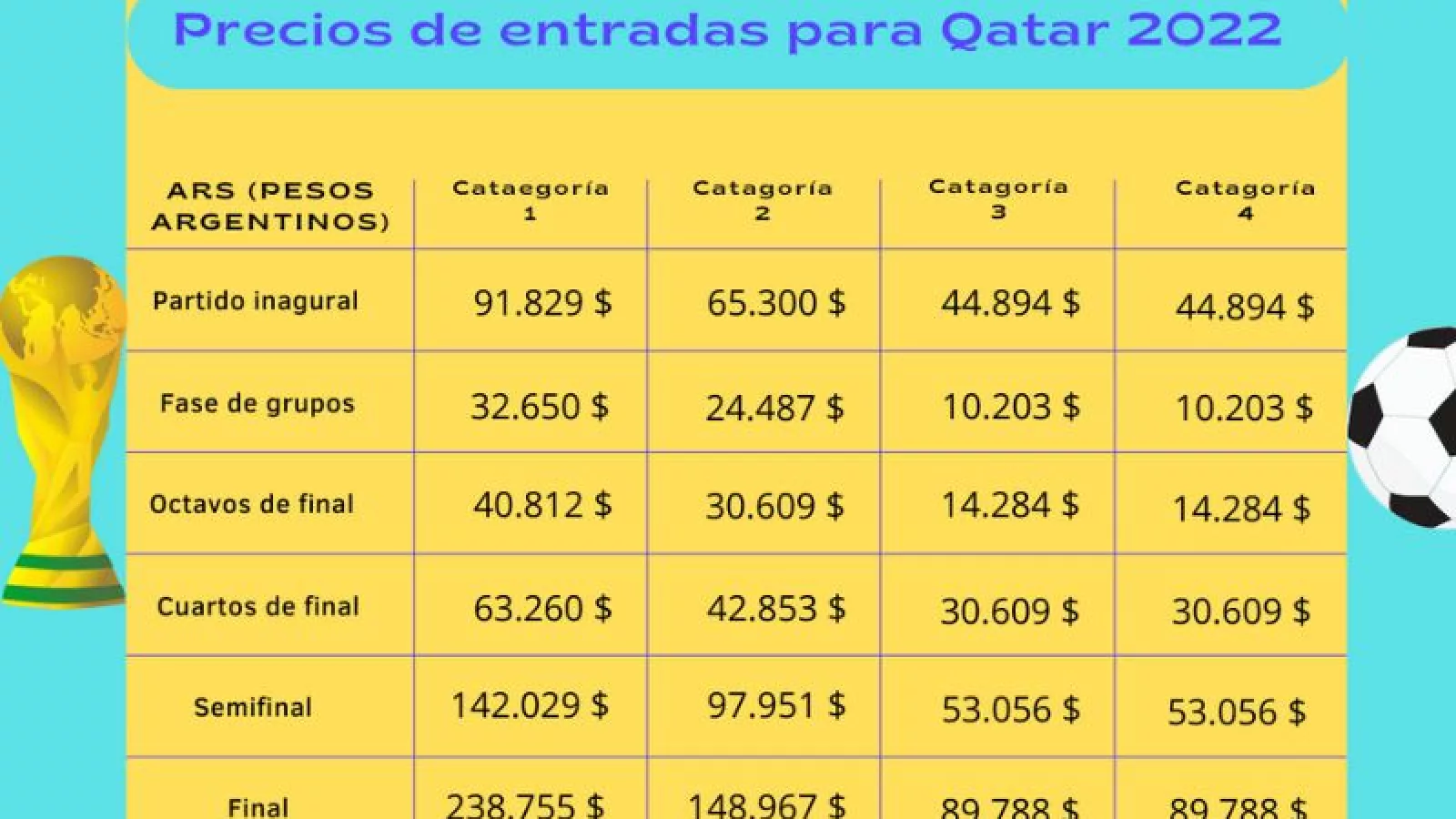 Teniendo en cuenta que la fase de grupo se disputa entre el 20 de noviembre al 2 de diciembre, un argentino en promedio enfrentaría los siguientes gastos en pesos argentinos en esos 13 días: