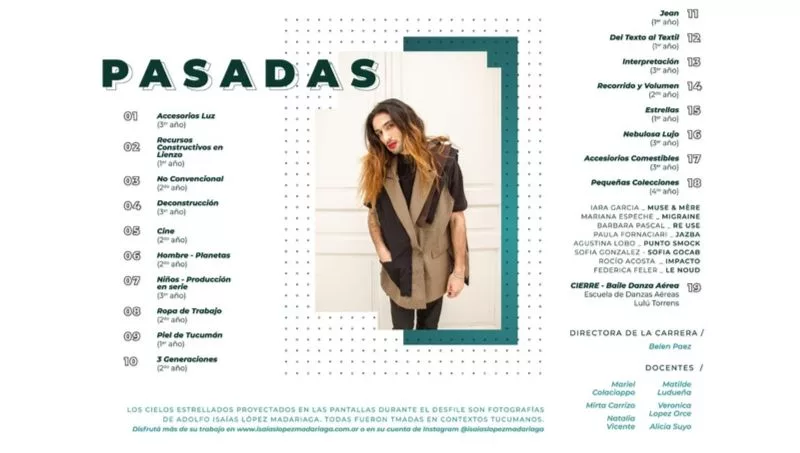 “Siempre tratamos de brindar un espectáculo que sea distinto, incursionando en la indumentaria para que haya distintos usuarios, y que no sea siempre la moda como prioritaria. El año pasado trabajamos con la indumentaria para esqueiter y ropa circense”, recordó la docente.