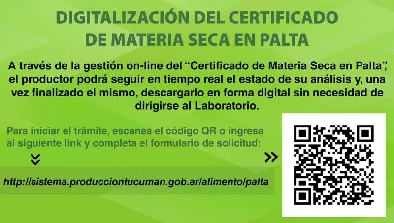 En las últimas horas, la Dirección de Alimentos del Ministerio de Desarrollo Productivo, a través de su Laboratorio de Control de Calidad Frutihortícola, informó que se encuentra habilitada la gestión online del “Certificado de Materia Seca en Palta” que permitirá al productor tucumano realizar un seguimiento en tiempo real sobre el estado de su análisis, y luego podrá descargarlo de manera digital sin necesidad de acudir al laboratorio.