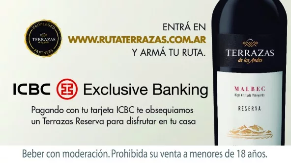 De yapa, ICBC se suma a esta propuesta gastronómica y ofrece una promoción única para sus socios: aquellos que consuman el menú y paguen con su tarjeta ICBC Exclusive Banking, el banco les obsequiará un Terrazas Reserva para disfrutar en su casa.